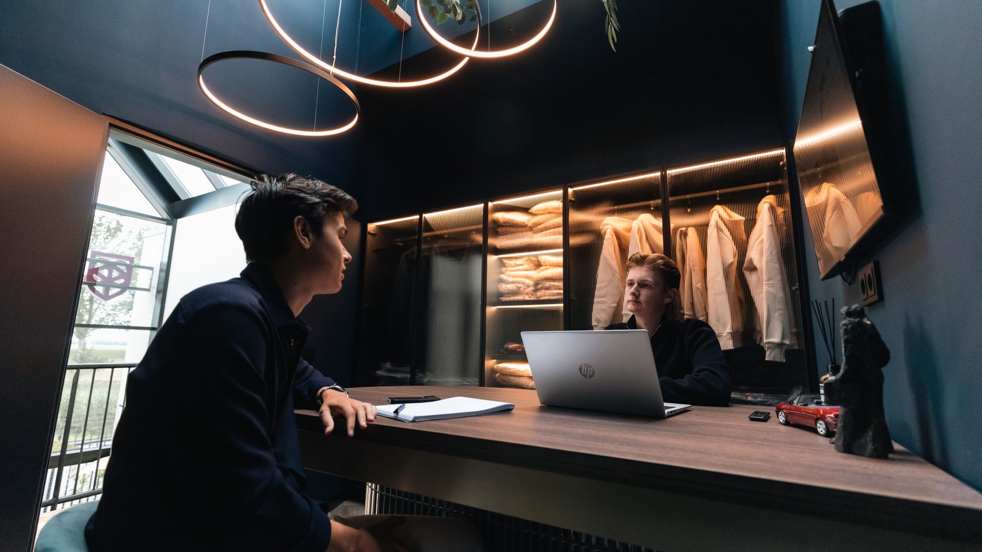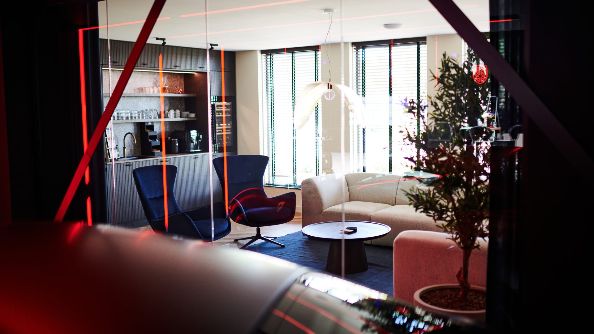 Toen eind 2024 het juiste pand werd gevonden, vertaalde we dit concept naar een concreet ontwerp. In januari 2025 lag er een definitief plan: een doordachte indeling met de doorbraak van kantoor naar loods, een balans tussen werken en ontvangen. Materialen, kleuren en maatwerk vormen samen een interieur dat professionaliteit ademt en energie uitstraalt.